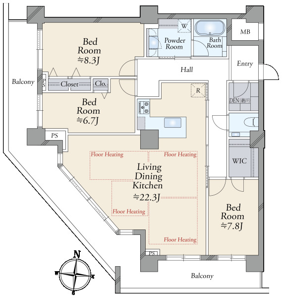 | バルコニー面積・向き | 32.92m2(9.95坪) 南向き |